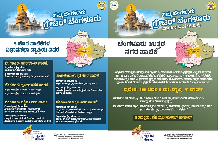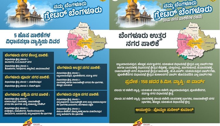 ಗ್ರೇಟರ್ ಬೆಂಗಳೂರು ಪ್ರಾಧಿಕಾರ’ ರಚನೆ : ಇಲ್ಲಿದೆ 5 ಹೊಸ ಪಾಲಿಕೆಗಳ ವಿಧಾನಸಭಾ ವ್ಯಾಪ್ತಿಯ ವಿವರ.! ಸುದ್ದಿ By ಶುಭಾಶಯ ನ್ಯೂಸ್ ಜಾಲ On ಸೆಪ್ಟೆಂ 4, 2025 Share ಬೆಂಗಳೂರು ನಗರದ ನಾಗರೀಕರಿಗೆ ಸಮರ್ಥ ಮತ್ತು ಉತ್ತಮ ಸೇವೆ ನೀಡುವ ಸಲುವಾಗಿ ಐದು ನಗರ ಪಾಲಿಕೆಗಳು ಹಾಗೂ ‘ಗ್ರೇಟರ್ ಬೆಂಗಳೂರು ಪ್ರಾಧಿಕಾರ’ ರಚನೆ ಮಾಡಲಾಗಿದೆ. Share