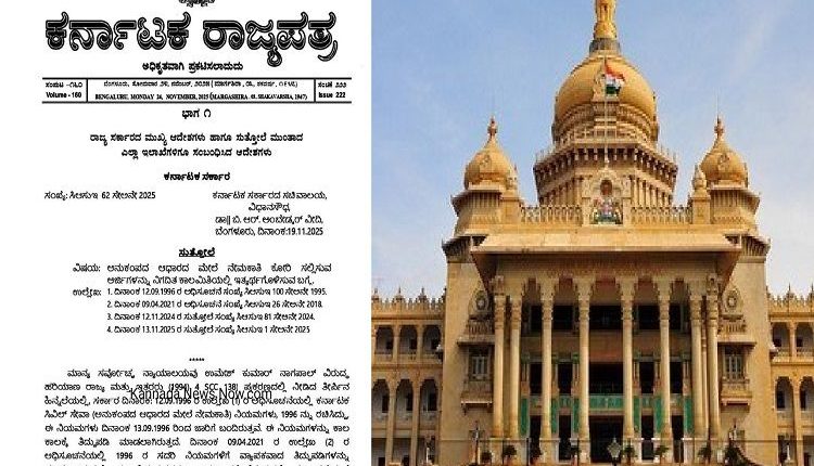 ಮಾನ್ಯ ಸರ್ವೋಚ್ಚ ನ್ಯಾಯಾಲಯವು ಉಮೇಶ್ ಕುಮಾರ್ ನಾಗಪಾಲ್ ವಿರುದ್ಧ ಹರಿಯಾಣ ರಾಜ್ಯ ಮತ್ತು ಇತರರು (1994) 4 SCC 138) ಪ್ರಕರಣದಲ್ಲಿ ನೀಡಿದ ತೀರ್ಪಿನ ಹಿನ್ನೆಲೆಯಲ್ಲಿ, ಸರ್ಕಾರ ದಿನಾಂಕ: 12.09.1996 ರ ಉಲ್ಲೇಖ (1) ರ ಅಧಿಸೂಚನೆಯಲ್ಲಿ ಕರ್ನಾಟಕ ಸಿವಿಲ್ ಸೇವಾ (ಅನುಕಂಪದ ಆಧಾರದ ಮೇಲೆ ನೇಮಕಾತಿ) ನಿಯಮಗಳು, 1996 ನ್ನು ರಚಿಸಿದ್ದು, ಈ ನಿಯಮಗಳು ದಿನಾಂಕ 13.09.1996 ರಿಂದ ಜಾರಿಗೆ ಬಂದಿರುತ್ತವೆ. ಈ ನಿಯಮಗಳನ್ನು ಕಾಲ ಕಾಲಕ್ಕೆ ತಿದ್ದುಪಡಿ ಮಾಡಲಾಗಿರುತ್ತದೆ. ದಿನಾಂಕ 09.04.2021 ರ ಉಲ್ಲೇಖ (2) ರ ಅಧಿಸೂಚನೆಯಲ್ಲಿ 1996 ರ ಸದರಿ ನಿಯಮಗಳಿಗೆ ವ್ಯಾಪಕವಾದ ತಿದ್ದುಪಡಿಗಳನ್ನು ಮಾಡಲಾಗಿರುತ್ತದೆ.