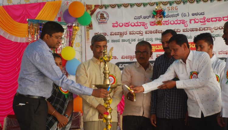 ಆಳಂದ ಪಟ್ಟಣದ ಪ್ರತಿಷ್ಟಿತ ಎಸ್‍ಆರ್‍ಜಿ ಫೌಂಡೇಶನ್ ಅಡಿಯಲ್ಲಿ ನಡೆಯುತ್ತಿರುವ ವೆಂಕಯ್ಯ ಕೂಸಯ್ಯ ಗುತ್ತೇದಾರ ಸ್ಮಾರಕ ಕಲಾ, ವಿಜ್ಞಾನ ಮತ್ತು ವಾಣಿಜ್ಯ ಪದವಿ ಮಹಾವಿದ್ಯಾಲಯದಲ್ಲಿ ಸೋಮವಾರ ಹಮ್ಮಿಕೊಂಡಿದ್ದ ಪ್ರಥಮ ವರ್ಷದ ವಿದ್ಯಾರ್ಥಿಗಳ ಸ್ವಾಗತ ಸಮಾರಂಭ ಹಾಗೂ ಶೈಕ್ಷಣಿಕ ಸಾಲಿನ ಸಾಂಸ್ಕøತಿಕ, ಕ್ರೀಡೆ ಮತ್ತು ರಾಷ್ಟ್ರೀಯ ಸೇವಾ ಯೋಜನೆಯ ಚಟುವಟಿಕೆಗಳ ಉದ್ಘಾಟನೆ ನೇರವೇರಿಸಿ ಮಾತನಾಡಿದರು.
