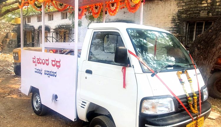 ಚಿತ್ತಾಪುರ: ಪಟ್ಟಣದ ಪುರಸಭೆ ವತಿಯಿಂದ ಯಾರಾದರೂ ಮೃತಪಟ್ಟರೆ ಶವಯಾತ್ರೆ ಮಾಡಲು ಸಾರ್ವಜನಿಕರ ಅನುಕೂಲಕ್ಕೆ ವೈಕುಂಠ ರಥ ವಾಹನ ಸೌಲಭ್ಯ ಮಾಡಿರುವುದು.